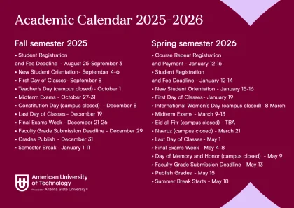 The American University of Technology (AUT), in partnership with TBC Bank, is proud to support the “Profession Has No Gender” initiative aimed at empowering talented young women in Uzbekistan. This grant program provides full tuition coverage for the first year of study to those pursuing degrees in STEM (Science, Technology, Engineering, Mathematics) and Entrepreneurship.